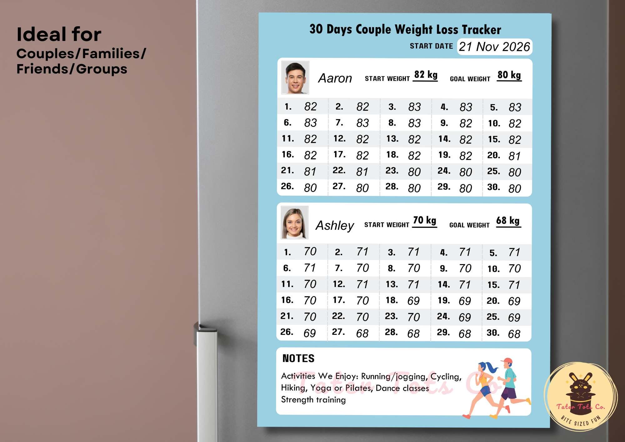 30-Day Weight Loss Tracker: Dual Tracking for Couples & Groups (Editable PDF)