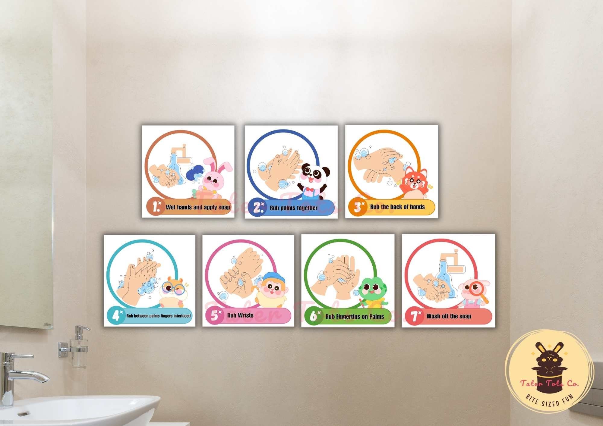 7 Step Wash hands sign for Preschool Toilet Training and Instructions Cute Cartoon Animals Theme Instant Download (PDF)