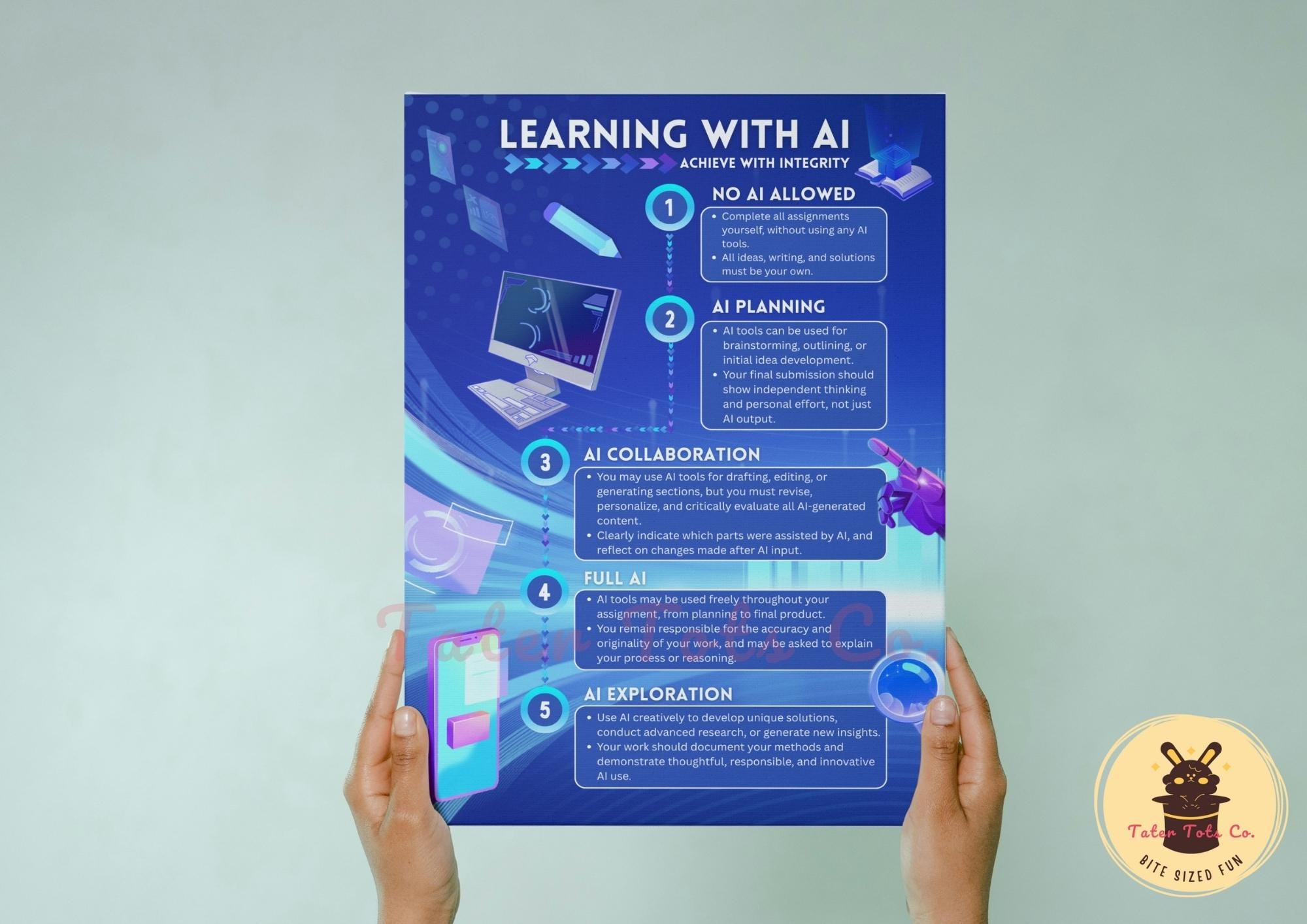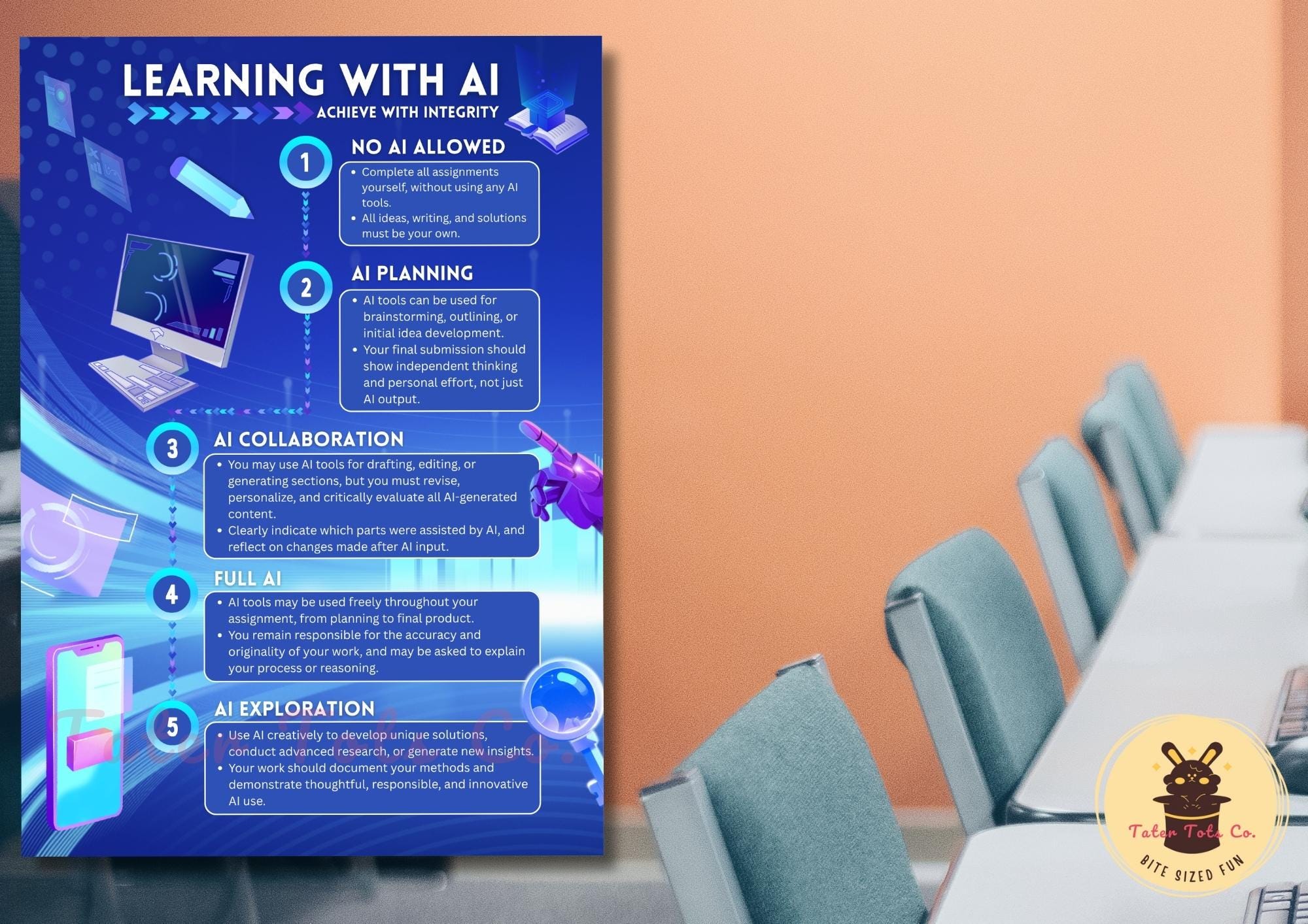 AI Usage Levels Infographic School and Classroom Policy and Rules Poster Instant Download PDF