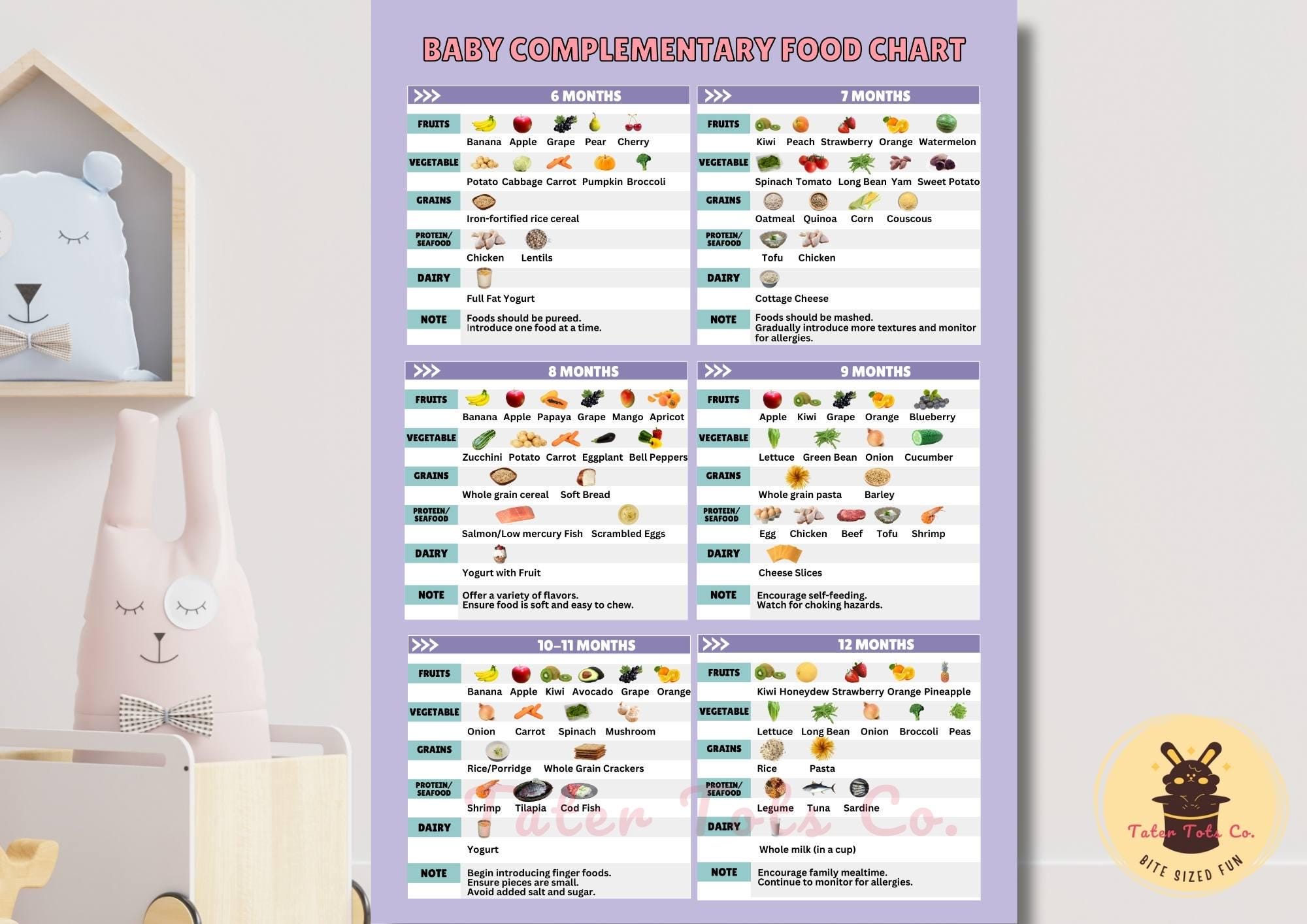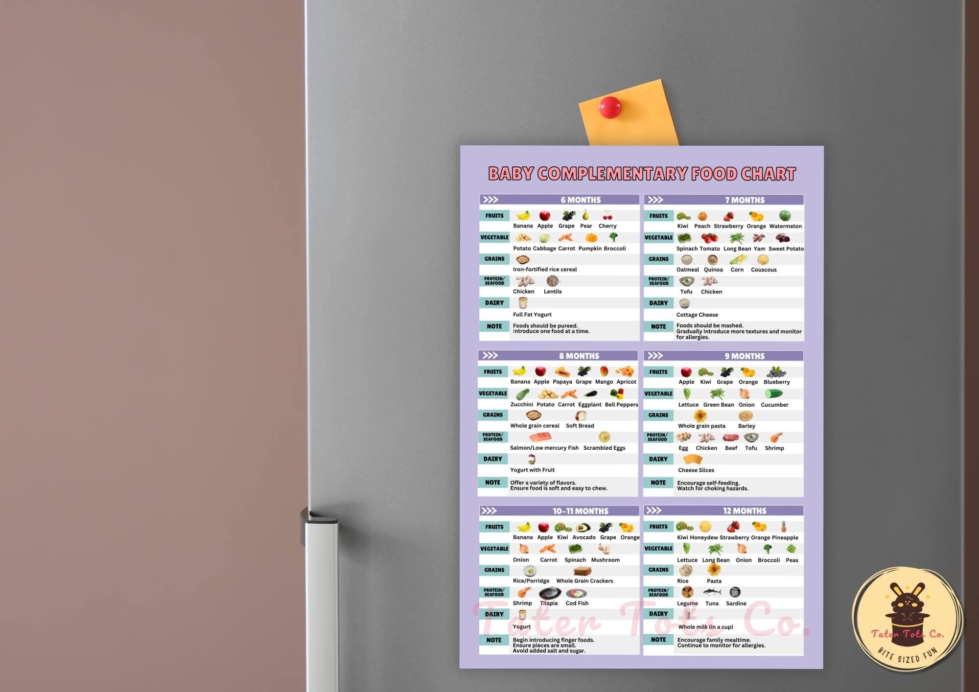 Baby Complementary Food Introduction Chart Feeding Guide for 6-12 Months | Instant Download PDF