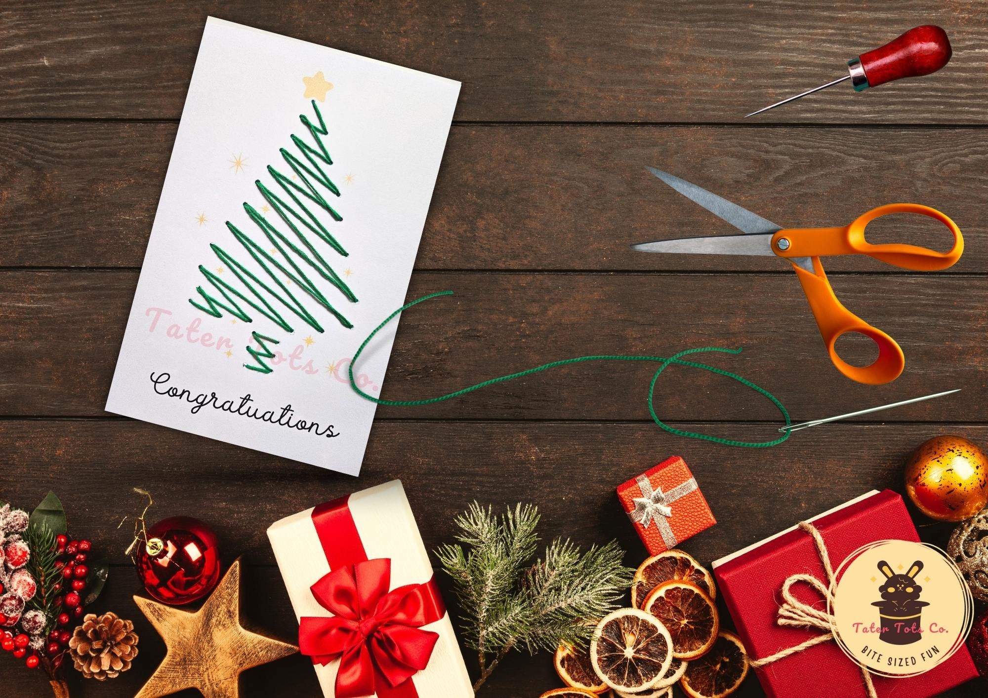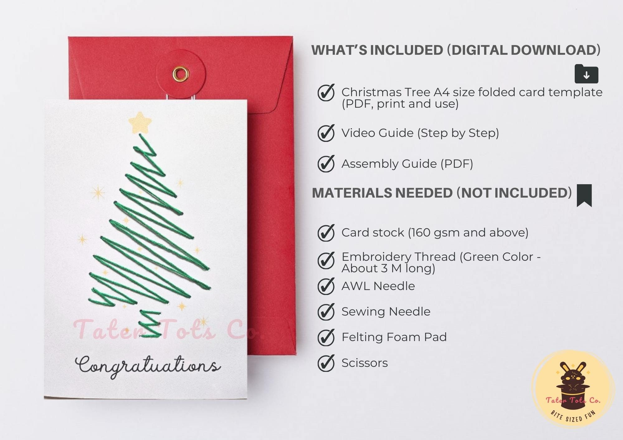 • DIY Christmas Tree Embroidery Card Pattern and Instructions - available in foldable A4 size (with the Greeting "Congratulations" or blank greeting)