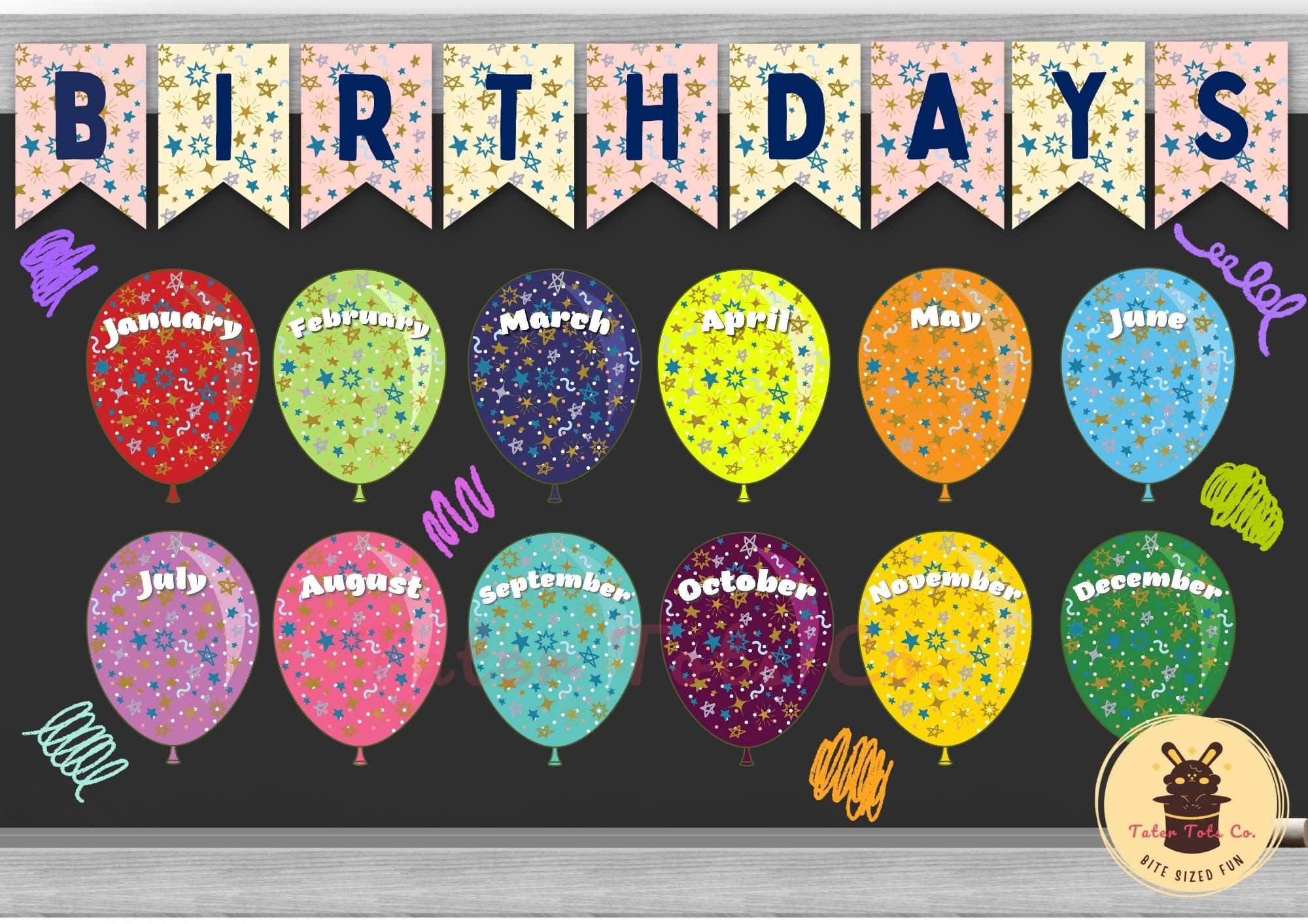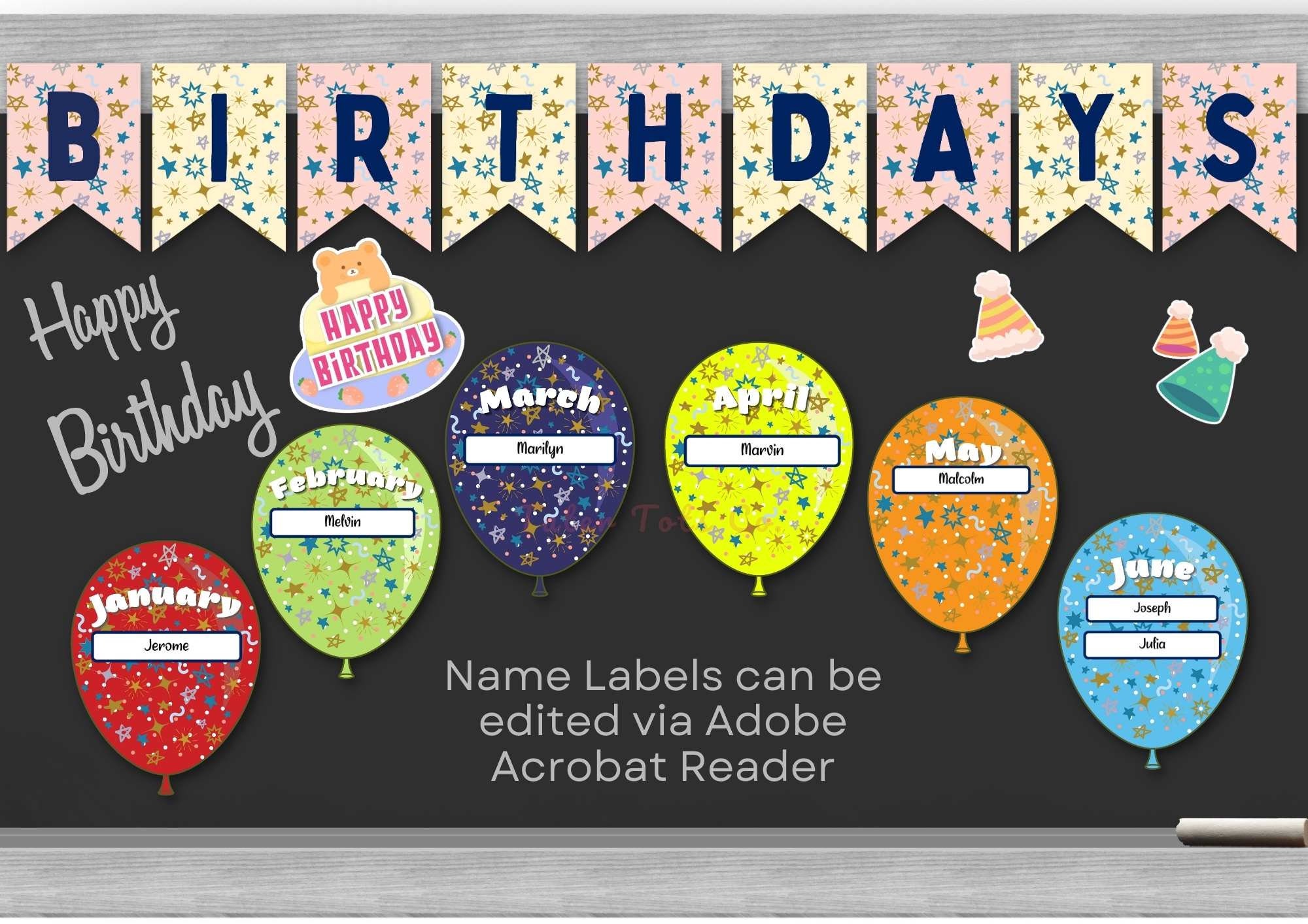 It makes a bright and colorful addition to your bulletin boards and wall displays. Using a birthday calendar is a great way to celebrate birthdays and help children learn the months of the year. Use the colorful balloons to display the list of kids who have their birthdays each month, using the editable name labels or their photos.
