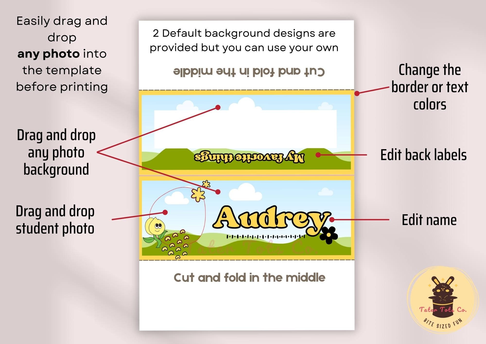 Duplicate as many as you need. With our template, you can save time and effort while making beautiful school photo name tent cards.