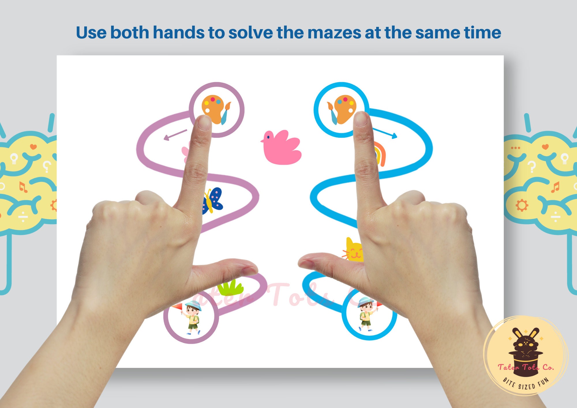 Double Doodle Bilateral Finger Mazes, Colorful and Cute theme Beginner Level Cognitive Skills Puzzles (Set of 16) Instant Download PDF