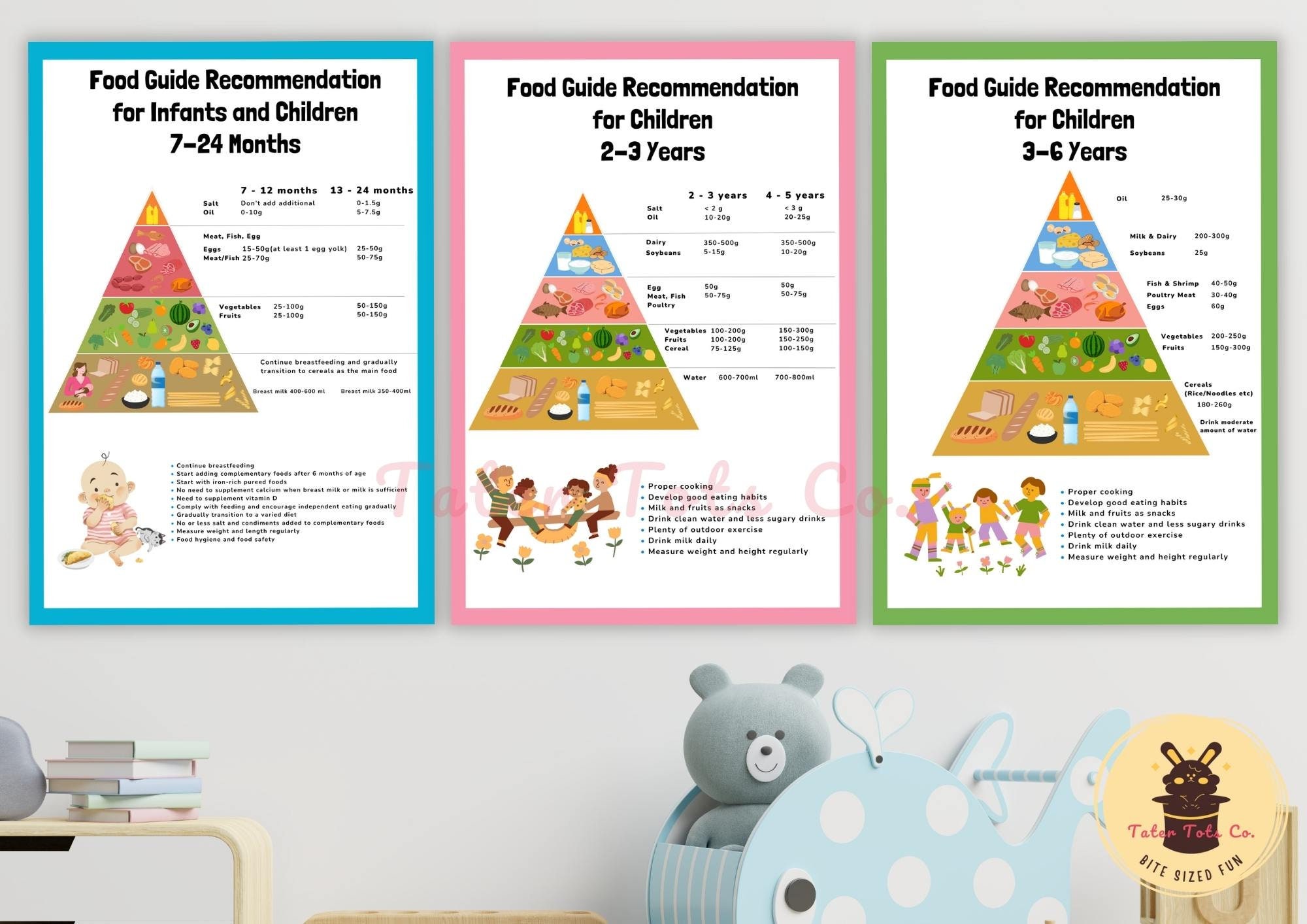 Food Guide Recommendation for Children - Includes 3 Posters with Food Pyramid and Intake Infant to 6-year-old Instant Download PDF