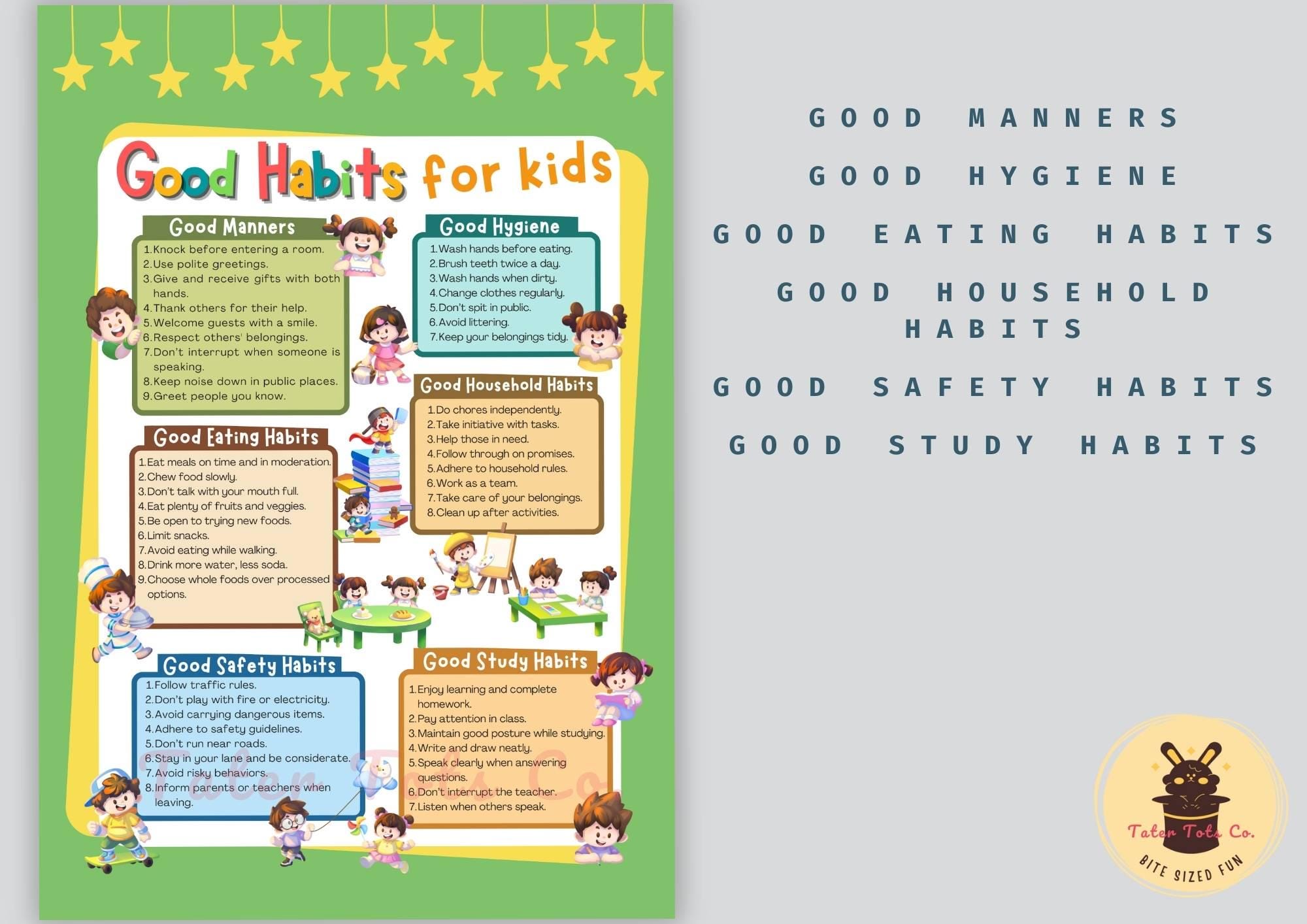 Kids Good Habits Poster: Daily Routine & Manners Guide (PDF Download)