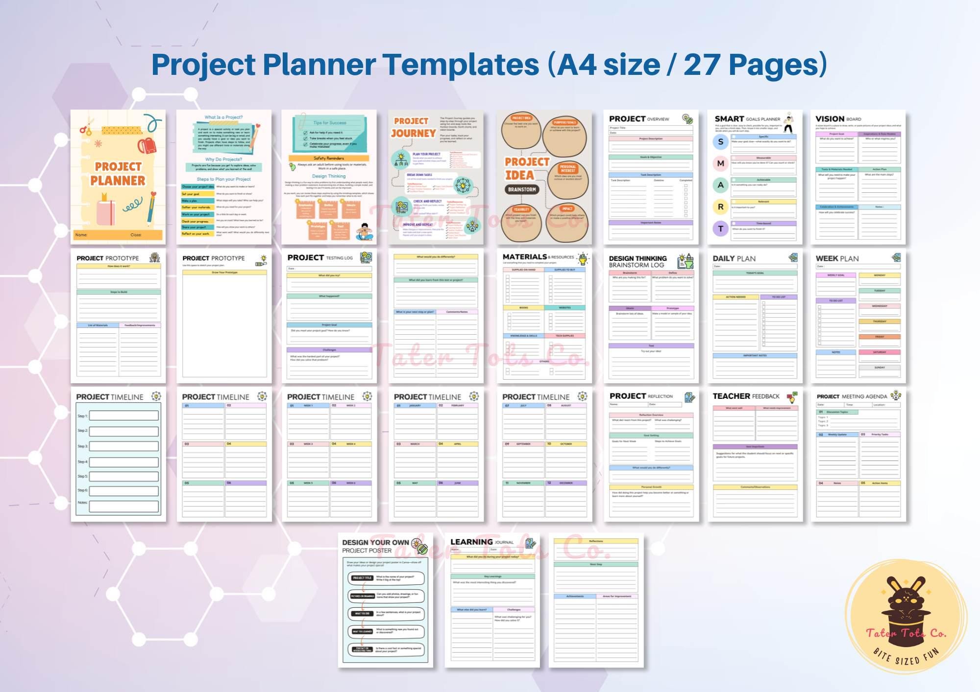 • Project Planner Templates with Editable Name/Class on Cover page (27 pages) A4 size