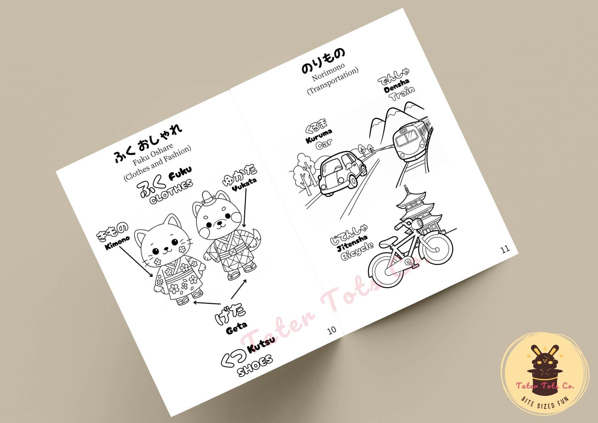 Learn Japanese for Kids: Daily Essentials Coloring Book Fun Illustrations | Printable A4 Bifold PDF Instant Download
