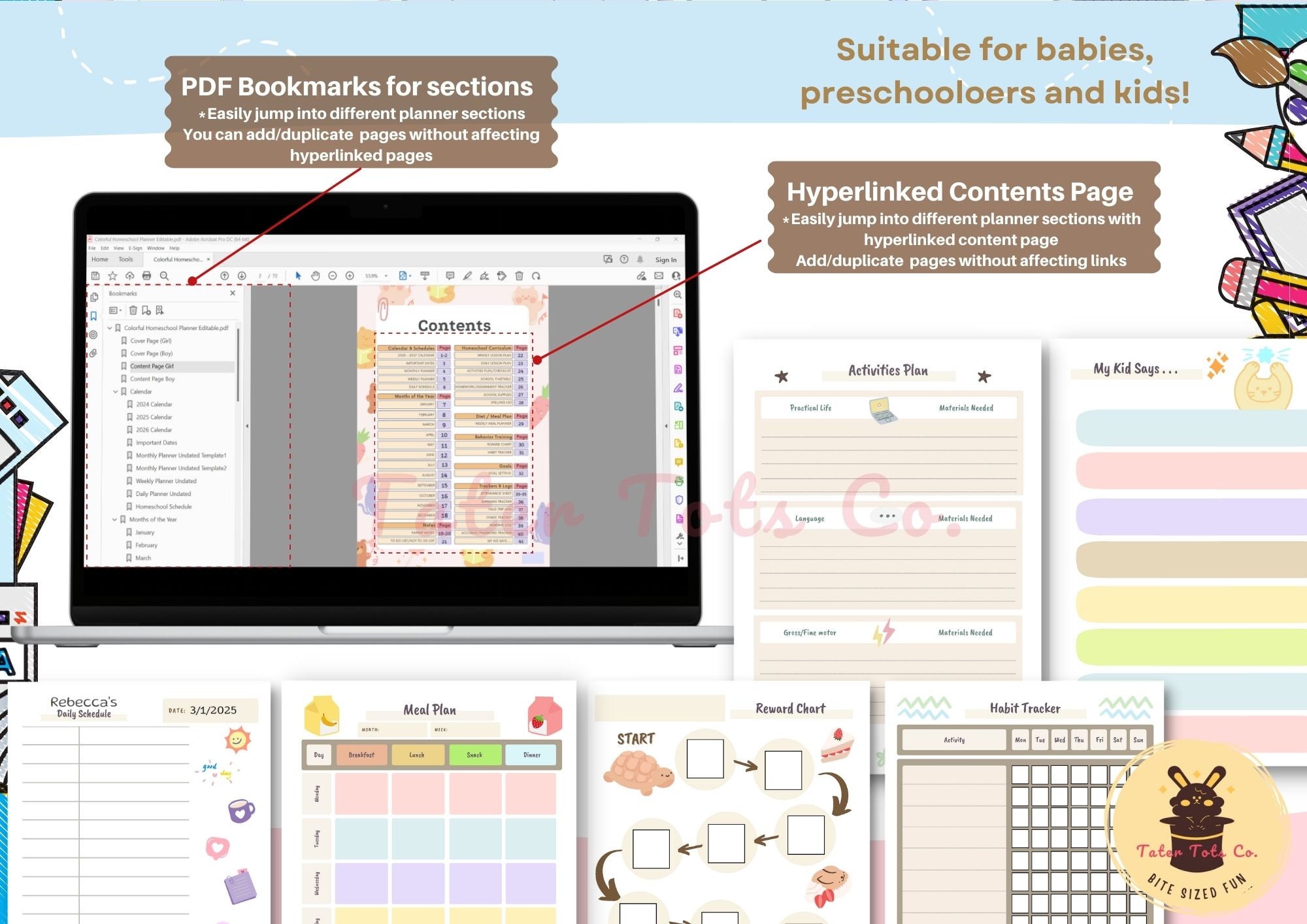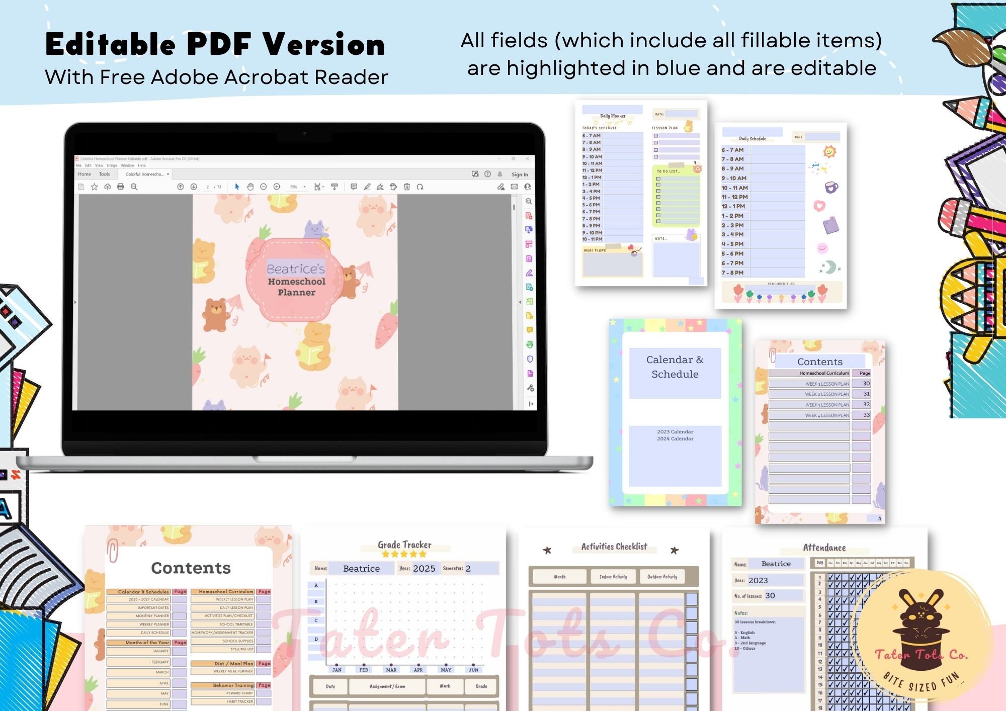 • Download link to Colorful Homeschool Planner Editable (73 pages)