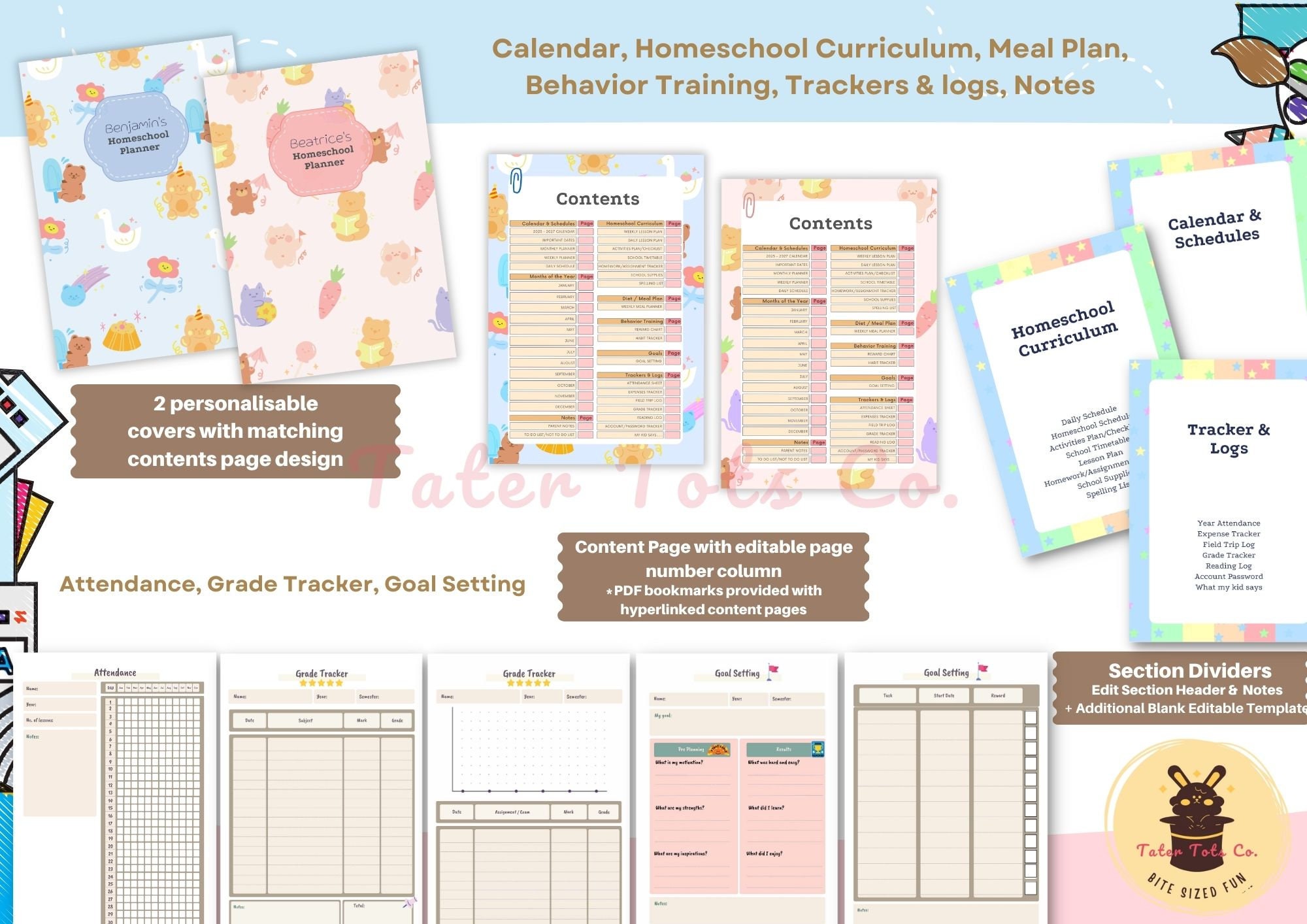 Feeling overwhelmed juggling homeschooling? You need a homeschool planner that covers everything from calendaring (monthly, weekly, and daily schedules) to meal plans, activity planners, trackers, and checklists. We have prepared a complete and detailed comprehensive planner suitable for children from pre-k levels and above.