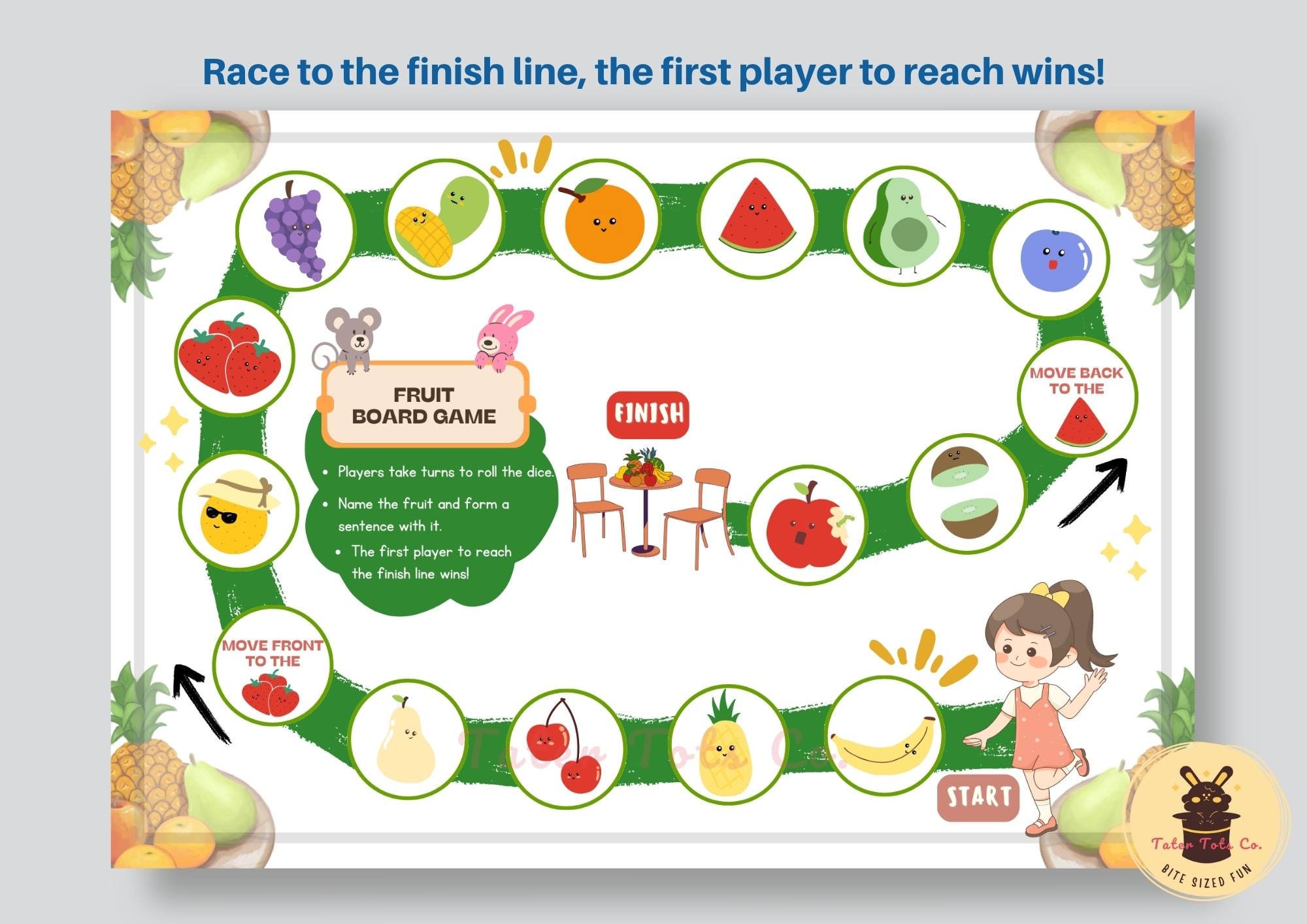 The first player to reach the finish line wins!