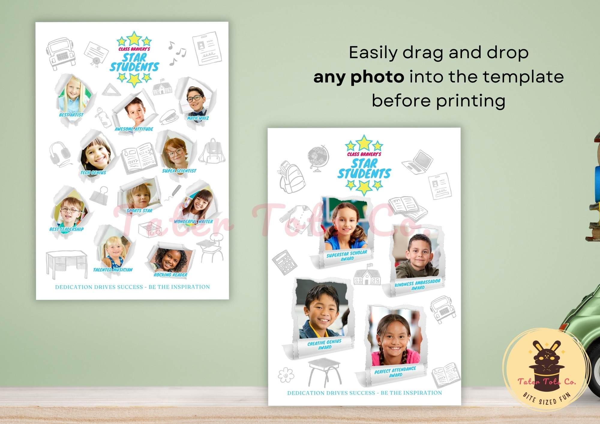 Star of the Day and Week - Class Best Students Torn Paper Effect Photo Collage Classroom Display Canva Template with Instant Access